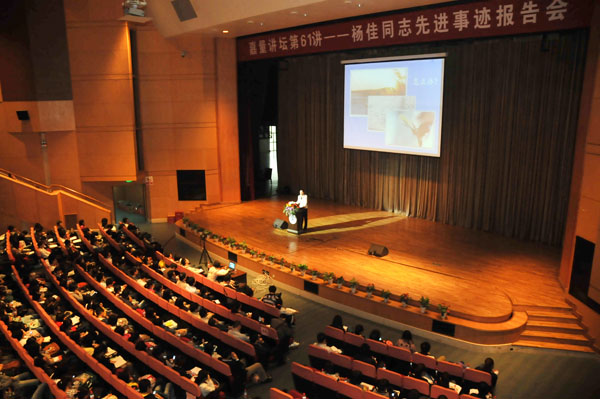 据了解,由中央统战部、教育部联合主办的杨佳同志先进事迹报告会高校巡讲于今年10月底在北京林业大学正式启动。我校是此次巡讲的第三站。