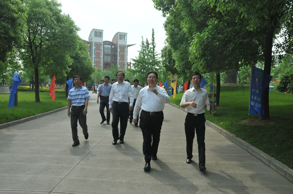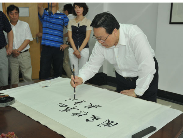 纪正昆主任一行在我校党委书记于永明,校长林建忠,党委副书记徐涌金,副校长蒋家新、俞晓平、宋明顺等的陪同下先后参观了我校的国家磁性材料及其制品质量监督检验中心、方圆楼、现代计量测试技术与仪器实验室。在经济与管理学院,纪正昆主任一行听取了学院的工作汇报,并欣然题字“国家标准化教育培训基地”,表达了对我校的殷切期望。