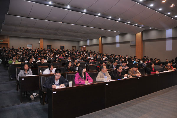 一个半小时的精彩讲座赢得了大家阵阵掌声。一位法学专业的学生说:“讲座轻松但又深刻,引起了我对所学专业更多的思考。”在最后的互动环节,同学们踊跃提问,胡校长精彩解答,一次次将现场的气氛推向高潮。