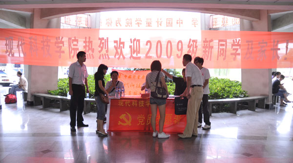如果说头戴小红帽的青年志愿者是校园中一道独特的风景线。那么,在新迎队伍中,一支由现代科技学院学生党员组成的“党员之家”服务队也格外引人注目。无论是在报到现场,还是东区生活区内都有他们忙碌的身影。他们与志愿者一样,帮助新生完成报到手续,陪同新生入住公寓,用心维持现场秩序,耐心接受新生和家长咨询,还主动、热情地向新生描述起大学的生活和提醒他们在平时的学习生活中应该注意的相关事项。“我们是服务员、讲解员、搬运员、协调员……但我们拥有同一个名字——共产党员。”一位不愿透露姓名的学生党员说。