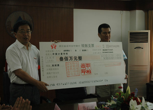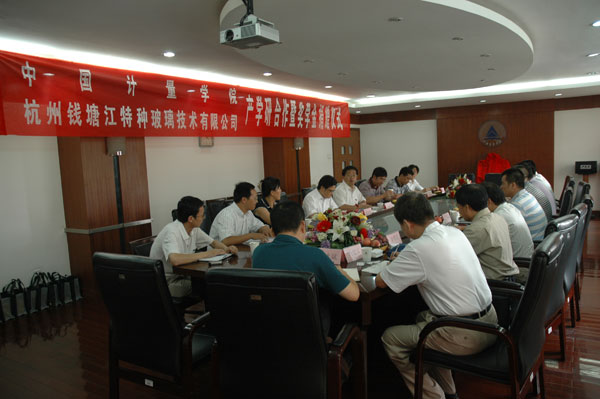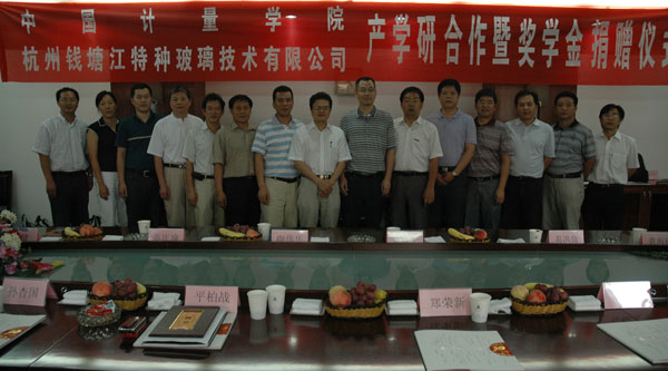 为了推进以企业为主体、以市场为导向、产学研相结合的自主知识技术创新体系建设,我校与杭州钱塘江特种玻璃技术有限公司本着“优势互补,互惠互利,共同创新,共谋发展”的原则,建立产学研合作关系,共建“中国计量学院—钱塘江特种玻璃无机新材料研发及检测中心”。7月16日,双方举行了产学研合作暨奖学金捐赠仪式。杭州市经济委员会、杭州市经济技术开发区等相关部门的领导,杭州钱塘江特种玻璃技术有限公司董事长、总经理平柏战,我校党委副书记陶伟华、副校长俞晓平等出席了仪式。