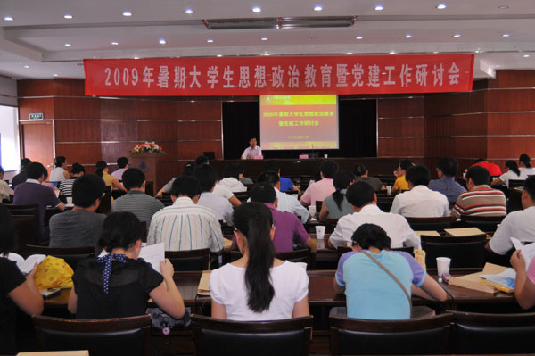 8月17日,我校召开了2009年暑期大学生思想政治教育暨党建工作研讨会。党委书记于永明、党委副书记陶伟华出席会议。会议由学生处处长范庆瑜主持。