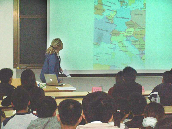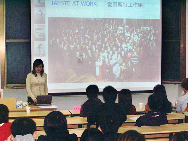 宣讲会上,爱因斯特中国负责人郭涵芳女士对爱因斯特项目作了介绍。宣讲会还邀请了浙江大学张丹同学作了克罗地亚实习报告。爱因斯特在我校的实习生Jacob Ehnmark (瑞典)、Mira (德国)介绍了自己的国家。 我校莫亚琴同学作了德国实习报告。
