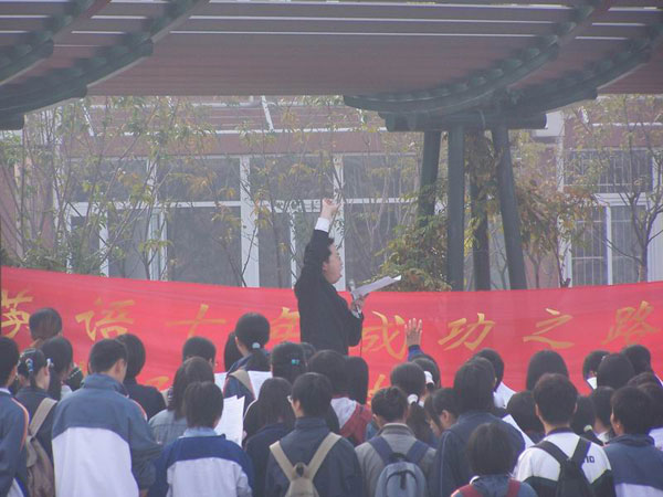 10月29日清晨6点10分到7点40分,由外国语学院承办的中国计量学院站疯狂英语晨读操练会在湖畔广场举行。本次活动的主题是《口语突破四级作文必备句型》,是由李阳疯狂英语杭州高校部主办的大型晨读系列活动之一。
