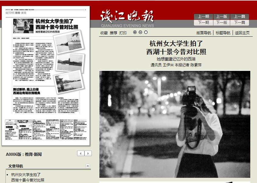[浙青网] 用镜头记录历史,杭州大三女生制作出西湖十景今昔对比照