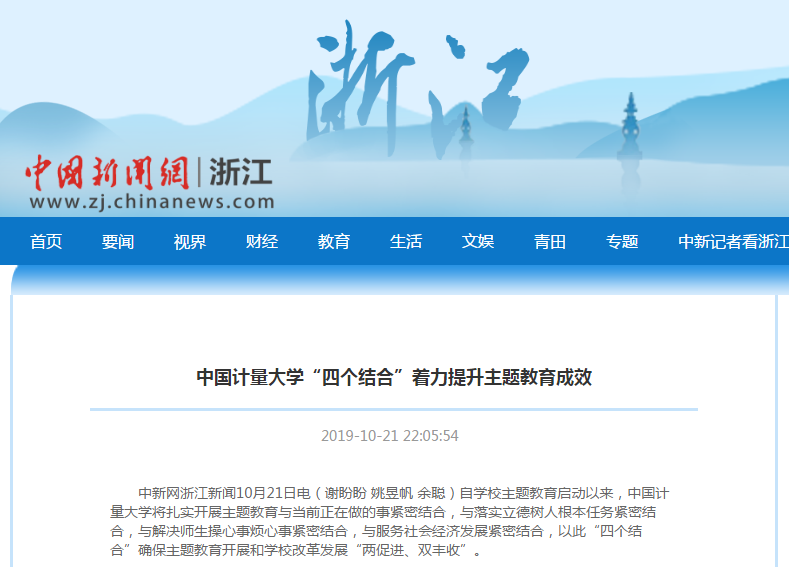 自学校主题教育启动以来,中国计量大学将扎实开展主题教育与当前正在做的事紧密结合,与落实立德树人根本任务紧密结合,与解决师生操心事烦心事紧密结合,与服务社会经济发展紧密结合,以此“四个结合”确保主题教育开展和学校改革发展“两促进、双丰收”。