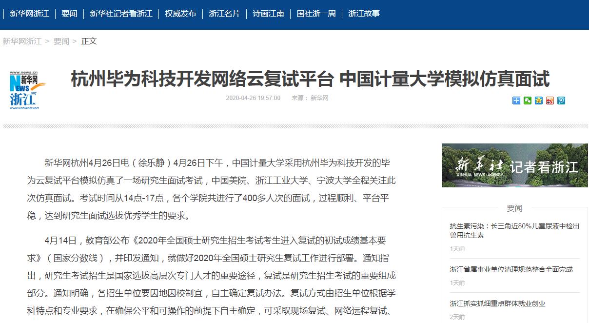 至此,网络云复试正式进入国内高等教育研究生面试环节。中国计量大学在严格考察毕为云复试平台各个应用环节后,认为毕为云复试平台符合教育部研究生复试的各项指标要求,做到了四比对,三随机,考试过程中现场感优秀,完全能够为疫情期间高校研究生复试提供服务。