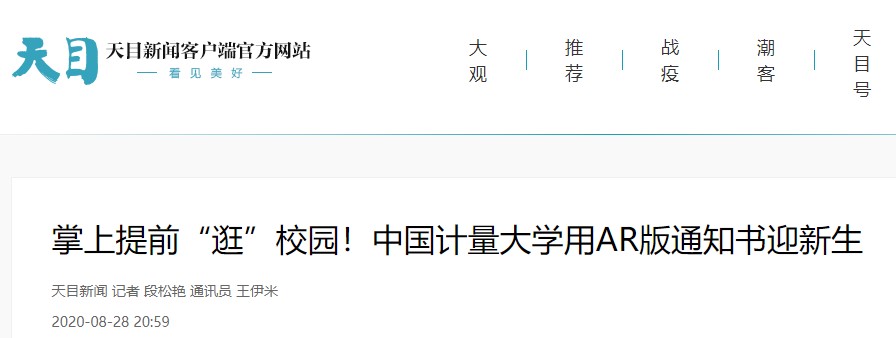 从2019年开始,中国计量大学发给本科新生的录取通知书,每一份都嵌入了基于AR技术的虚拟校园平台。今年这一版是经过改进升级后的首次亮相。