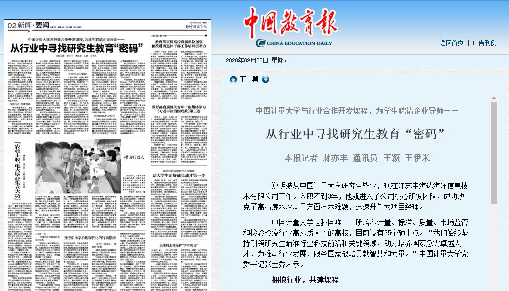 学校也面临没有可供参照人才培养模式,缺乏专门课程和教材等难题。答案从哪找?中国计量大学尝试问计行业机构和企业,共建研究生教育课程。