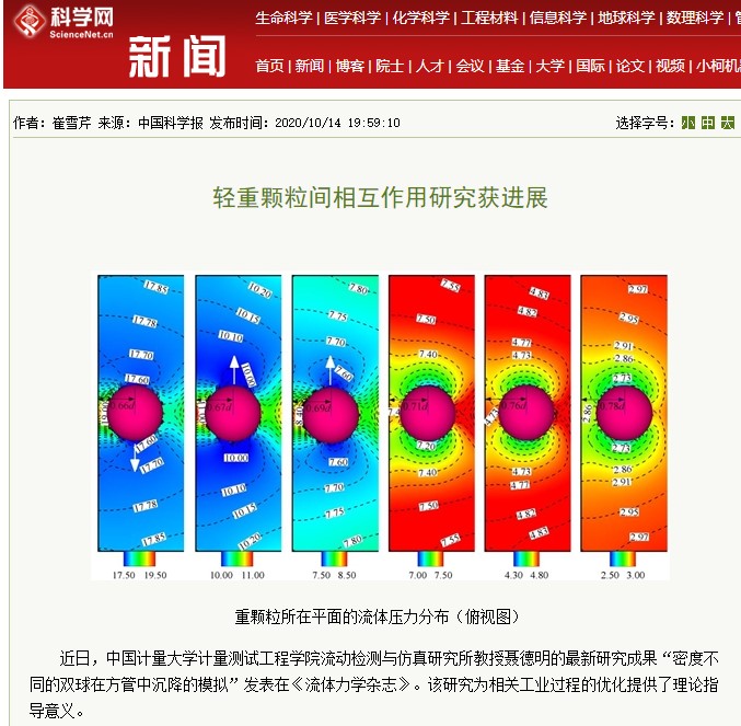 近日,中国计量大学计量测试工程学院流动检测与仿真研究所教授聂德明的最新研究成果“密度不同的双球在方管中沉降的模拟”发表在《流体力学杂志》。该研究为相关工业过程的优化提供了理论指导意义。