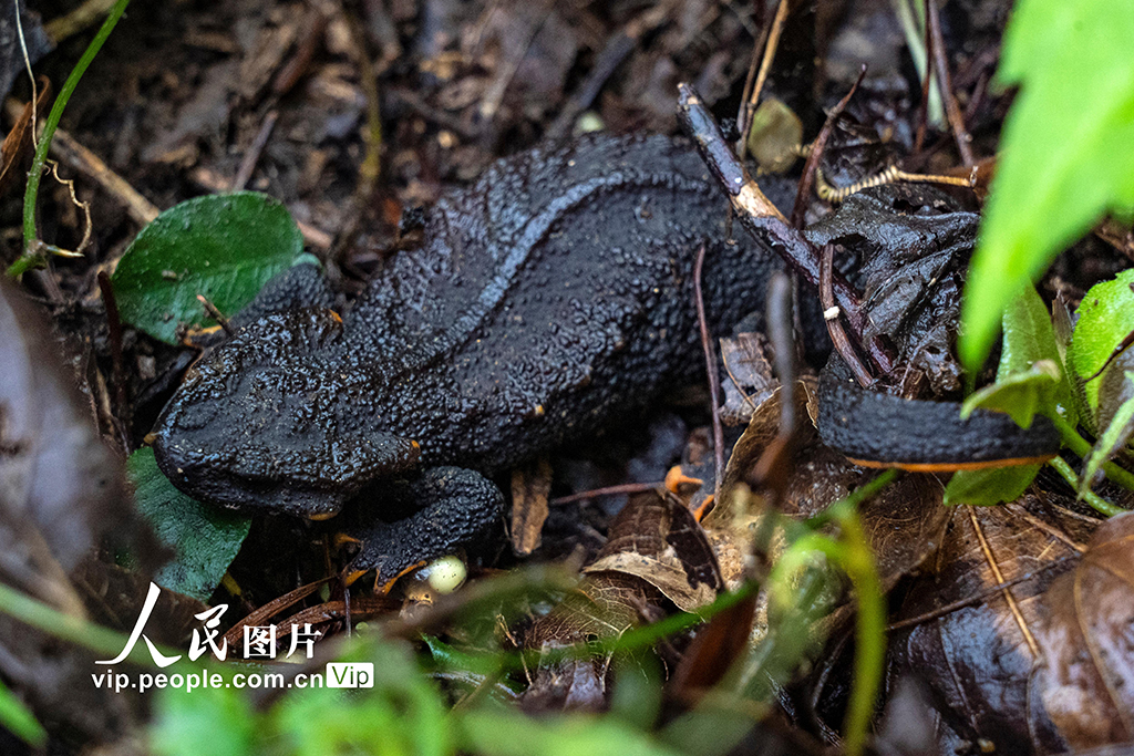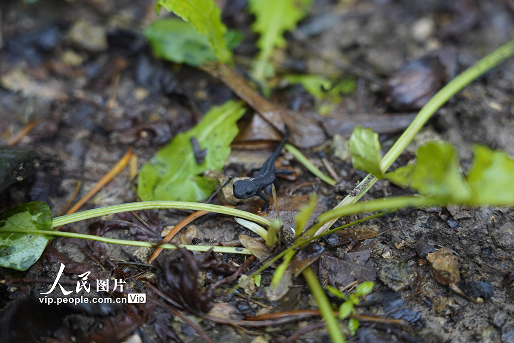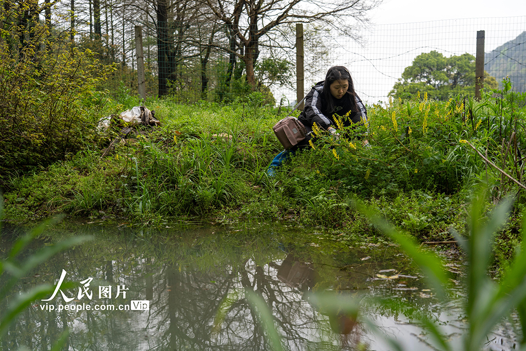 2021年10月13日,在浙江省宁波市北仑区柴桥街道的镇海棘螈保护区内,中国计量大学镇海棘螈研究团队的成员们将人工繁育的350余尾镇海棘螈放归野外。