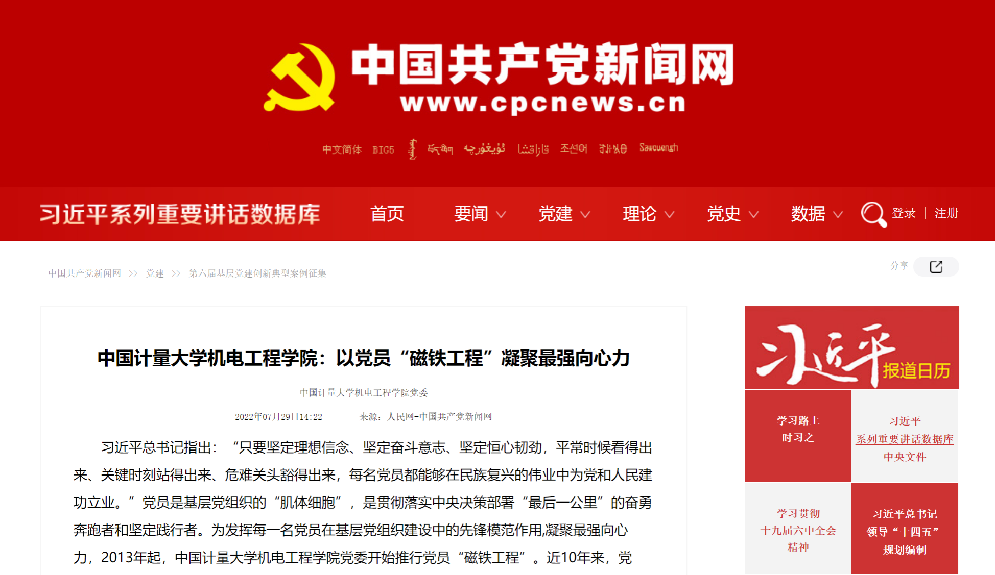 习近平总书记指出:“只要坚定理想信念、坚定奋斗意志、坚定恒心韧劲,平常时候看得出来、关键时刻站得出来、危难关头豁得出来,每名党员都能够在民族复兴的伟业中为党和人民建功立业。”党员是基层党组织的“肌体细胞”,是贯彻落实中央决策部署“最后一公里”的奋勇奔跑者和坚定践行者。为发挥每一名党员在基层党组织建设中的先锋模范作用,凝聚最强向心力,2013年起,中国计量大学机电工程学院党委开始推行党员“磁铁工程”。近10年来,党员“磁铁工程”取得了显著实效,实现了“党建红”推动“发展红”、“党建强”促进“党员优”、“党建亮”助力“名声响”的成效。