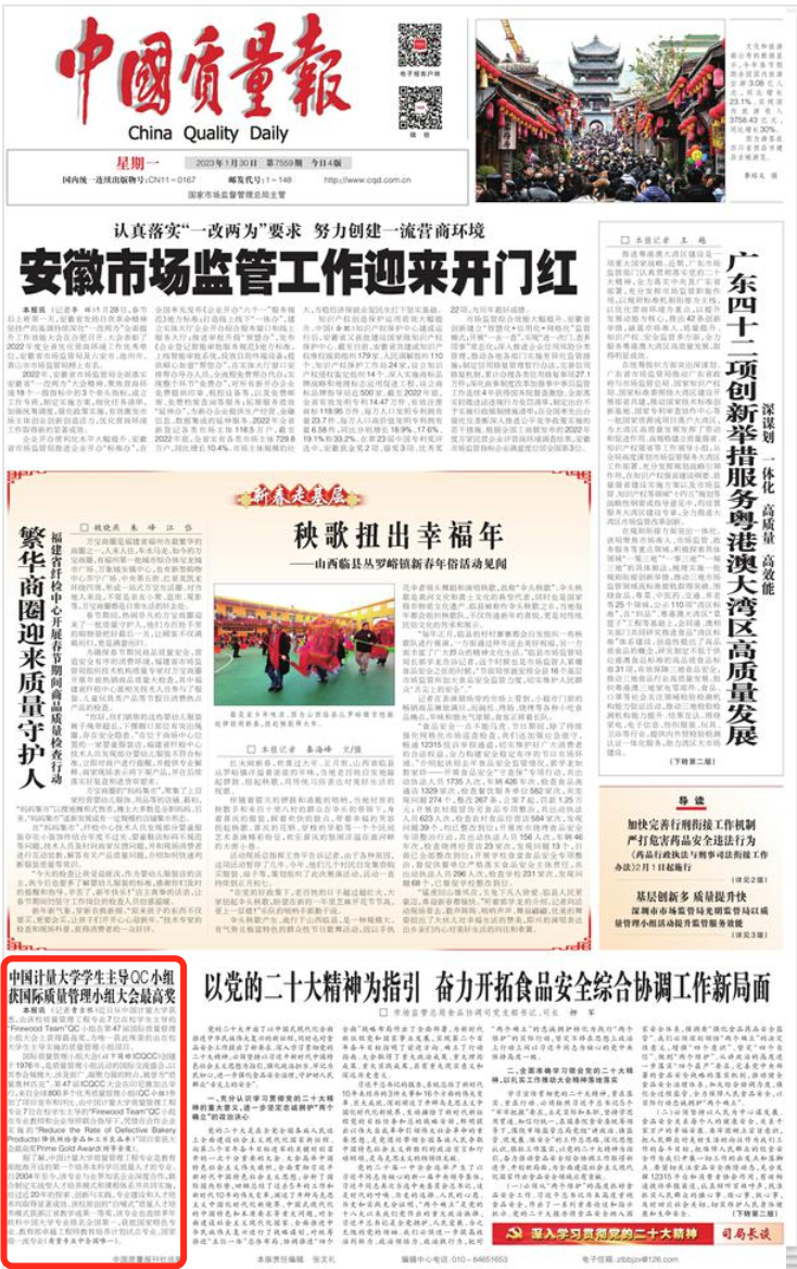 [中国质量报]中国计量大学学生主导QC小组获国际质量管理小组大会最高奖