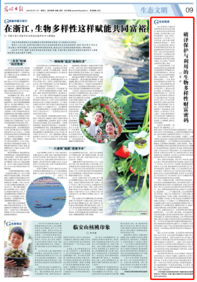 2023年2月11日,《光明日报》发表浙江省新型高校智库“质量发展法治保障研究中心”研究员、中国计量大学碳中和与绿色发展研究中心执行主任虞伟署名评论文章《破译保护与利用的生物多样性财富密码》。