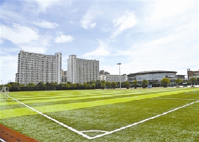 在中国计量大学下沙本部的足球场群落散步是件很惬意的事情——两片标准11人制足球场和三片五人制足球场被规整地划分在一起,满眼的绿意会让心情不由自主地跳跃起来;枣红色的塑胶跑道、蓝色的看台顶棚和远处灰白色的体育馆建筑,和谐的色块能让人产生平静愉悦的感觉。差不多两个月后,这里将会是第十三届全国学生运动会的大学生女足赛场。