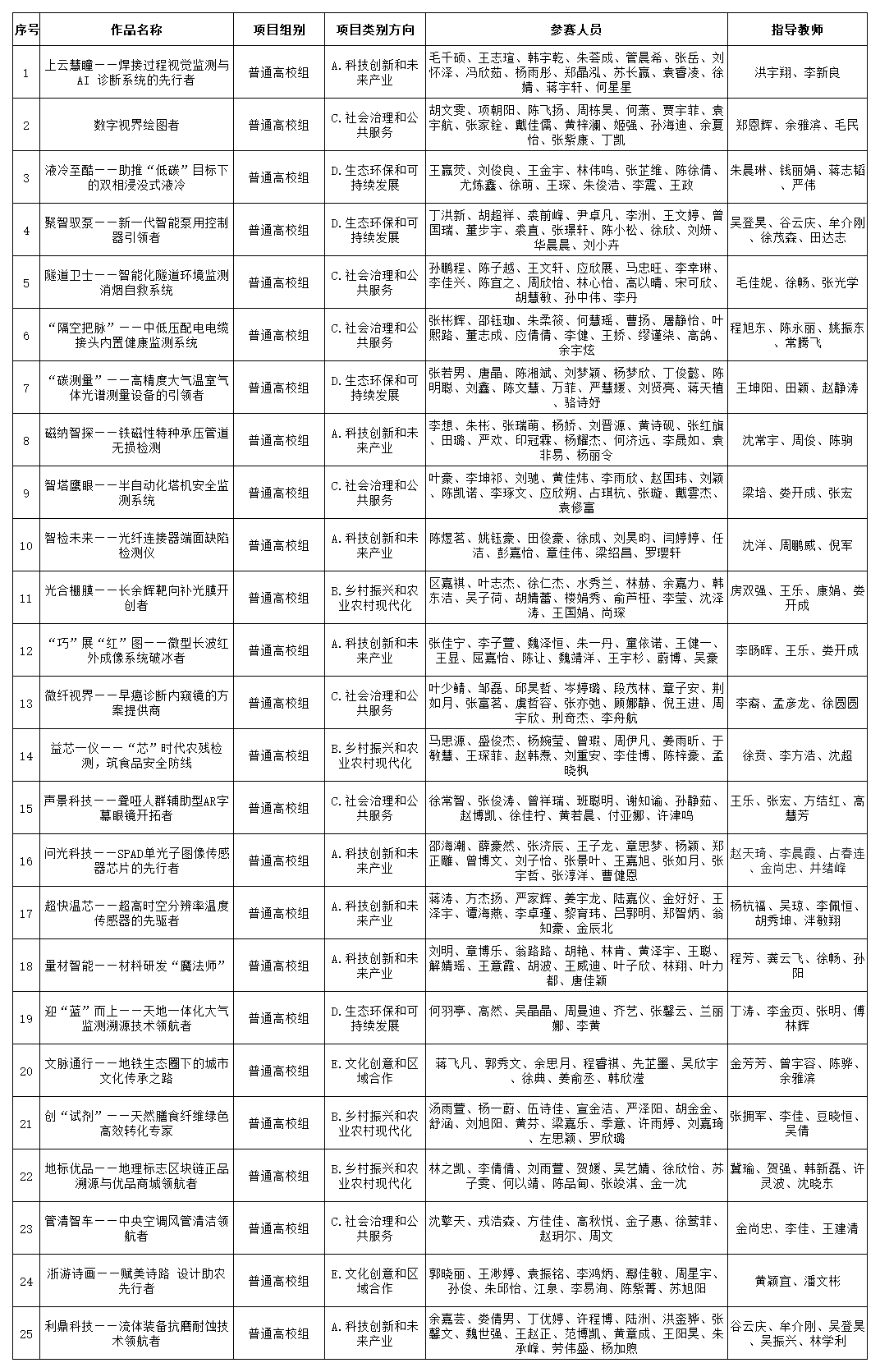 根据浙江省大学生创新创业大赛组委会发布的《关于举办浙江省第十四届“挑战杯”大学生创业计划竞赛的通知》要求,学校对参加浙江省第十四届“挑战杯”大学生创业计划竞赛的25件作品进行公示,作品主要信息如下表所示。