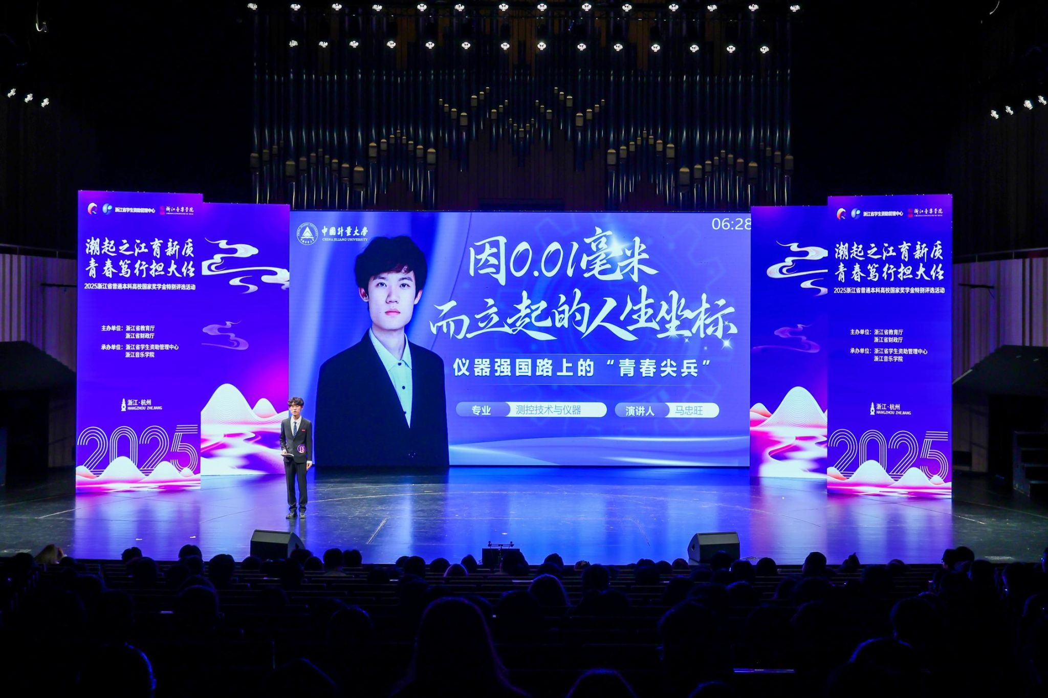 10月22日,浙江省2025年普通本科高校国家奖学金特别评选大会在浙江音乐学院举行。我校推荐的2022级测控技术与仪器专业马忠旺同学凭借其优异的学习成绩、突出的科研竞赛能力和出色的现场展示,从激烈的竞争中脱颖而出,荣获2025年浙江省本科高校国家奖学金特别评审奖(全省10名本科生)。