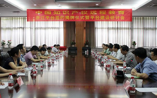 中国知识产权远程教育平台是国家知识产权局开设的公益性知识产权教学分布式平台,由中国知识产权培训中心进行开发和维护。为了符合浙江省知识产权事业和人才培养的需要,有效地推广和普及知识产权知识,中国知识产权培训中心与浙江省知识产权局同意合作,开设“中国知识产权远程教育浙江省知识产权远程教育平台”(以下简称浙江平台),鉴于国家知识产权培训(浙江)平台前期建设已取得成绩所形成的良好基础,培训中心和省局决定将浙江平台设置在我校的国家基地,并下设平首个分站——“中国计量学院分站”。中国知识产权培训中心孙玮副主任和省知识产权局陈龙根副局长共同签署协议并为中国知识产权远程教育浙江平台揭牌;陈龙根副局长和我校俞晓平副校长共同为浙江省知识产权远程教育平台中国计量学院分站揭牌。