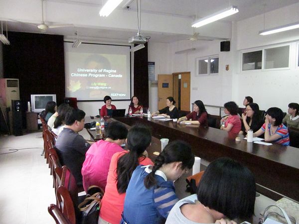 5月15日,王莉女士做的“加拿大汉语言文化交流与传播概述”讲座,介绍了加拿大高等教育体系、里贾纳大学概况和加拿大汉语言教育现状及国际交流合作,并特别介绍了里贾纳大学中文专业的课程设置,学生生源、课堂及学生参加“汉语桥”等交流项目的具体情况。她用具体事例生动展现了汉语教学课堂呈现的方式。讲座后,王莉女士和外语学院的老师在轻松的氛围中进一步探讨了教学和管理中的问题,并对双方开展师生国际交流进行了展望。