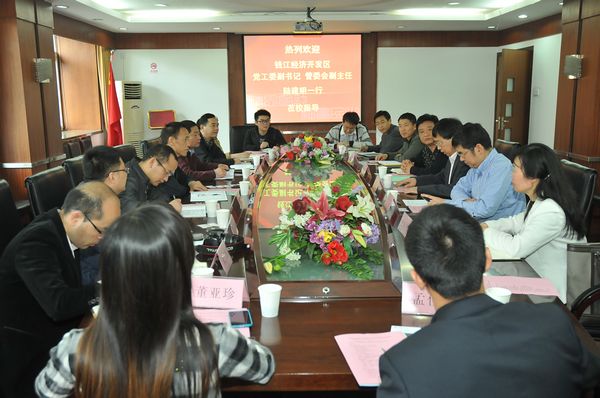 俞晓平副校长对陆副主任一行的到来表示热烈欢迎,并表示,大学是创新的源头,企业是创新的主体,一直以来我校同各地企业合作结合非常紧密,学校充分发挥专业特色,与多家开发区有着良好的合作基础,也取得了可喜的成绩;前期我校与钱江经济开发区开展了初步交流,并就信息交流、成果转化、人才培养和创新平台建设达成了初步合作框架,希望通过此次交流会能量化具体细节,深入推进双方合作。陆建明副主任介绍了钱江开发区的总体科技合作情况,并指出,开发区正处于非常发展的关键时期,开发区的定位就是要建设成创新创业型产业园区,其中技术创新与模式创新是关键,而计量学院有着天然的专业特色与创新创业平台优势,希望能在检测产业、新能源、先进制造业、节能环保方面深入合作,扶持重点产业,服务钱江经济开发区的经济发展。此外,双方还就合作研究、推动成果转化,促进人才培养等方面进行具体商讨。