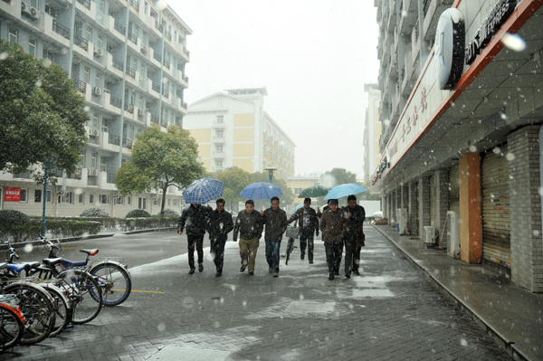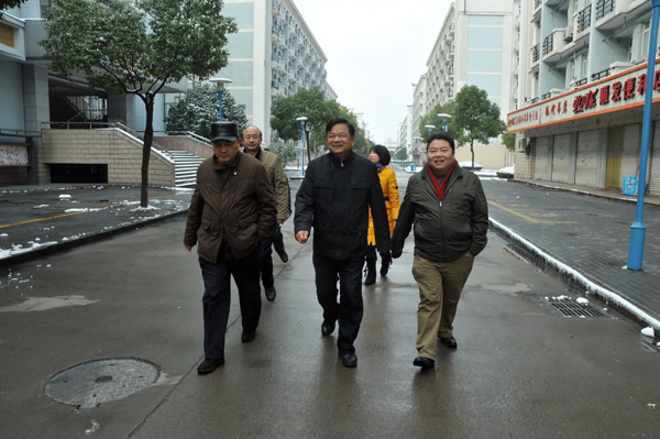 2月8日和2月9日,校党委副书记陶伟华、副校长冯时林以及纪委书记王小华在相关职能部门负责人、部分二级学院领导的陪同下,冒着纷飞的大雪看望了春节期间留校的师生。他们分别来到学生宿舍以及食堂等单位,向留校的同学以及坚守在工作岗位上的教职员工发放了春节慰问品,为他们送去了学校的亲切问候与祝福。