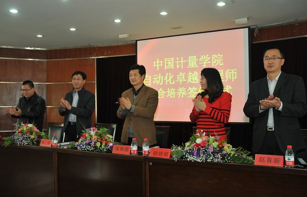 为了突出自动化专业“计控管一体化”的特色,为了培养“计控一体”和“管控结合”的自动化人才,机电工程学院自2012年2月成功加入国家第二批“卓越工程师教育培养计划”以来,充分遵循国家“卓越工程师教育培养计划”有关精神,积极探索、创新自动化卓越工程师人才培养模式。2013年3月12日下午,中国计量学院首届自动化卓越工程师联合培养签约仪式暨开班典礼隆重举行。中国计量学院副校长宋明顺教授,中国计量学院研究生部主任、自动化专业负责人陈乐教授,杭州和利时自动化有限公司、浙江中控技术股份有限公司等四家企业的代表,机电工程学院院长李青教授,党总支书记孙坚教授、党总支副书记汪志勤老师,自动化研究所全体老师以及2012级自动化卓越工程师班全体同学参加了仪式。签约仪式由机电工程学院孙卫红副院长主持。