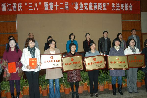 在第103个“三八”国际妇女节来临之际,浙江省教育工会在浙江理工大学隆重召开省教育系统先进女职工集体、先进个人和省第十二届“事业家庭兼顾型”先进个人表彰大会。我校标准化学院李丹青教授被授予浙江省“五一巾帼标兵”荣誉称号(全省教育系统仅评出3名),并作为获奖代表上台领奖;光电学院赵春柳、生命学院黄丽红、外语学院纪莹三位教师被评为省教育系统第十二届(2010-2012年度)“事业家庭兼顾型”先进个人。
