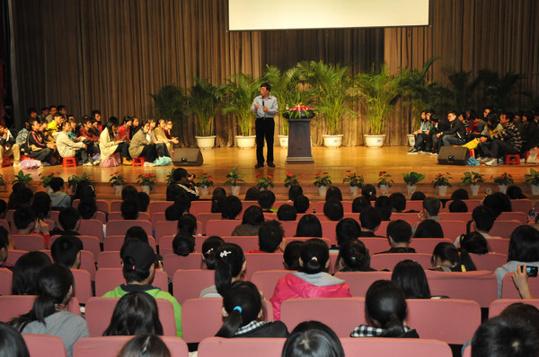 11月2日下午,嘉量大会堂座无虚席,新东方2011中国大学新生学习规划公益巡讲杭州第一站在这里开讲。新东方教育科技集团执行总裁陈向东和杭州新东方学校校长吕伟胜围绕大学学业规划的主题,以其幽默风趣的语风,睿智严谨的谈吐一次次引爆会场中热烈的掌声,现场气氛轻松互动积极。讲座前,校党委陶伟华副书记会见了陈向东总裁,双方进行了亲切交流。