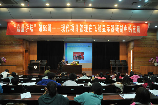 10月14日下午,我校91届无线电计量测试专业的毕业校友——总装载人航天工程专家夏显忠研究员应邀来到嘉量讲坛,给学弟学妹们讲述了《现代项目管理在飞船显示器研制中的应用》。精美的PPT、生动的案例、丰富的视频资料让现场同学们深切体会到了项目管理的重要性。