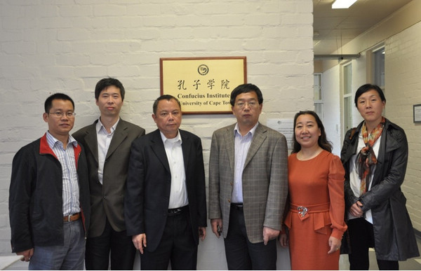 在南非开普敦期间,代表团首先与开普敦大学(University of Cape Town)进行了交流。开普敦大学代理副校长Nan Yeld女士、科研创新部主任Wilna Venter先生、人文学院院长Paula Ensor教授、国际交流处Connie Williams女士以及语言培训中心主任Clive Chandler、孔子学院中方院长吴潜龙教授等与代表团进行了交流,双方介绍了各自在教学、科研方面的基本情况和优势,对于在教学、科研、师资培养中的合作可能性进行了探讨。孔子学院中方院长吴潜龙教授带领代表团参观了该校孔子学院。会后中国驻开普敦总领事郝光峰先生接见了本校代表团。