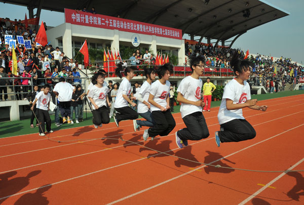 校第二十五届运动会田径比赛暨现代科技学院第七届田径运动会开幕式后,我校首届素质拓展大赛决赛在北田径场拉开帷幕,14支队伍进行了激烈的角逐。最终,信息学院、理学院、机电学院代表队分获前三名。