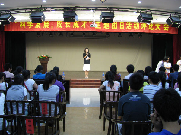 为深入学习实践科学发展观,激励广大同学坚定信念立志成才,促进基层团组织建设,增强班级团支部凝聚力,我校开展了为期一个月的以“科学发展,成长成才”为主题的主题团日活动,本次团日活动决赛阶段的评比于5日22晚在启明三楼多功能厅举行。