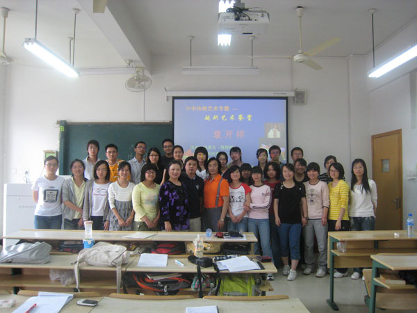 袁开祥先生从戏曲的基本特征和表演特点,讲解了浙江越剧发展的概貌以及艺术特色,越剧表演博采技艺,唸唱做打大胆地采用了京剧、舞蹈的表演形式,肢体行动舞蹈化,曲调散板流水京剧化,形成自身独特的虚拟性、程式性、综合性的表演风格;并通过精彩录像节选、多媒体图片的鉴赏,让听众感受越剧艺术的优美抒情、委婉甜润的魅力,同时分析了越剧众多流派及代表作。袁开祥先生风流倜傥的表演和幽默的说唱,深深地吸引了在场的听众,掌声起伏不断。在场的同学思维活跃,纷纷向袁老师讨教,袁老师给予正确的引导,课堂气氛活跃。最后,在优美的《梁祝》乐曲声中结束了这场精彩的讲座。