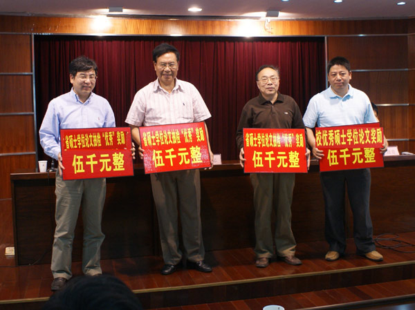 2009年5月14日,我校在明德B6楼会议室举行优秀硕士学位论文颁奖仪式,对2007年度“浙江省优秀硕士学位论文”和“校优秀硕士学位论文”等优秀论文的作者和指导教师进行奖励。颁奖仪式由研究生部负责人主持,校党委书记于永明、校长林建忠、人事处处长王政贵应邀出席颁奖仪式,我校2008年和2009年新增硕士研究生指导教师参加了颁奖仪式。