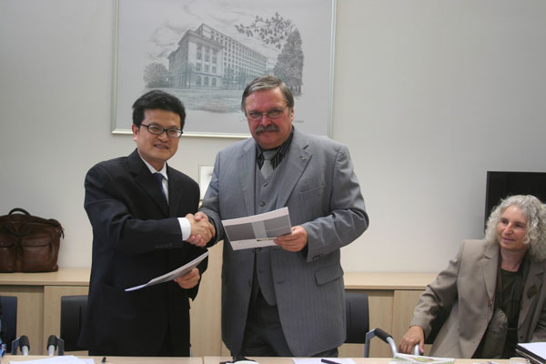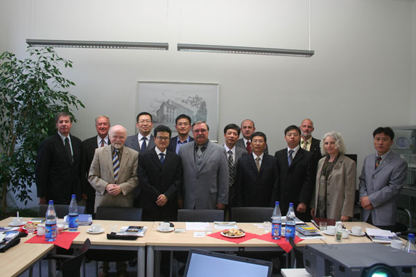 图片3:左三:德累斯顿工业大学外事处国际学生事务负责人Rimmele先生,左五:德累斯顿工业大学环境工程学科负责人Buchroithner教授