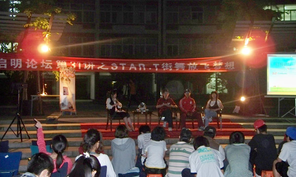 现场的街舞SHOW无疑是本期启明论坛的最大亮点。STAR.T街舞协会成员们的齐舞成果展POPPIN,BREAKING ,HIP-POP, B-BOY以及个人SOLO吸引了越来越多的同学围观,一时间一阵阵喝彩四处传来,将活动推向了高潮。