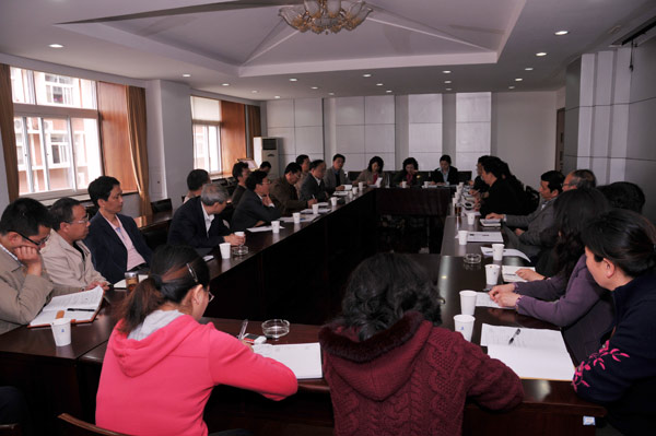 于永明在会上讲话。他说,学习实践活动最重要是解决如何发展的问题,座谈中教授们本着对学校发展的关切和期望,提出了很好的意见和建议,充分体现了大家的主人翁精神。于永明表示,学校会充分吸收教授们的意见和建议,部分在会后可以马上落实,部分将在学校今后出台政策措施时吸收采纳。最后,于永明指出,学校的发展目标目标十分明确,党政班子带领广大师生员工实现目标的决心丝毫没有动摇,希望教授们在学校发展过程中能充分发挥作用,献计献策,推动和促进学校的科学发展。