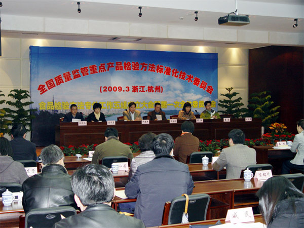 全国质量监管重点产品检验方法标准化技术委员会(以下简称“检标委”)食品检验方法专业工作五组(以下简称“检标委食品五组”)于3月6日在杭州正式成立,浙江省技术监督局和杭州市技术监督局有关领导出席会议,全国质量监管重点产品检验方法标准化技术委员会尹建军秘书长到会表示祝贺。来自全国的32家食品检测专家和媒体记者出席了本次会议。