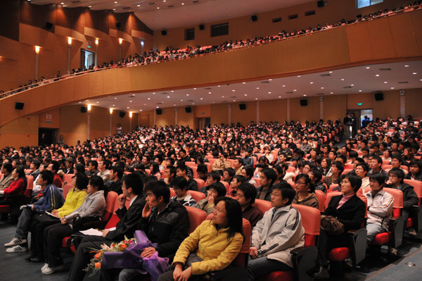 你会握手吗?你会鼓掌吗?你懂得怎样介绍自己吗?3月30日晚,嘉量大会堂座无虚席,一场全校学生党员深入学习实践科学发展观活动的报告会在这里举行。学校邀请了资深的人力资源专家、杭州三惠商务咨询有限公司总经理王皓珺为同学们作了一场《商务礼仪及面试技巧》的讲座,这也是学校嘉量讲坛第26讲。