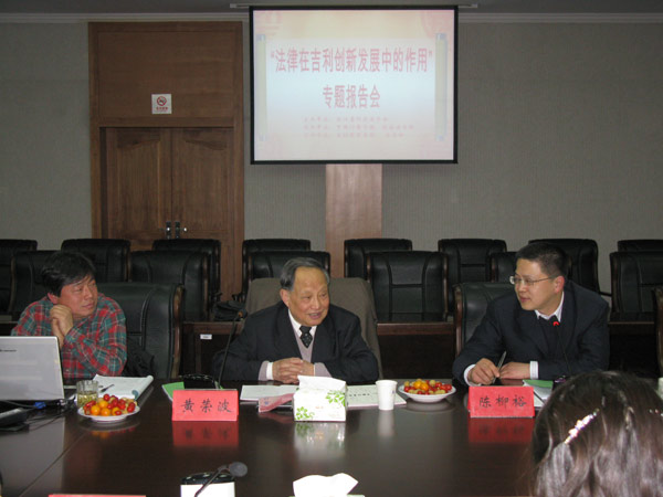 在金融危机使全球的汽车工业遭遇寒流,进入低谷、陷入困境、苦苦挣扎之际,中国的吉利汽车逆势上扬,呈现出令人瞩目的“吉利现象”,对此法学界尚缺乏关注,更少于研究。2009年4月1日,浙江省科技法学会、吉利集团与中国计量学院法学院经济法学科在我校联合举办题为“法律在吉利创新发展中的作用”的调研成果专题报告会,吉利集团陈文明副总裁、法务部万荃经理、浙江省科技法学会黄荣波会长、陈柳裕常务副会长与会。会前,俞晓平副校长会见了与会的主要人员。