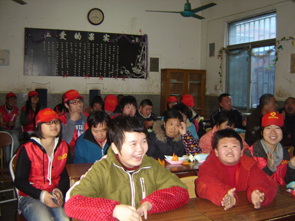 科技学院志愿者早早地来到了仁爱托管中心,趁着空暇积极投入了准备工作。托管中心的负责人邵老师对科技学院志愿者的再一次到来表示十分感谢,不自觉的就和大家讲述起了有关于托管中心的光辉事迹。志愿者听得津津有味,两眼迸发出崇拜的神采。午休时间结束,志愿者和中心托管员来到教室,进行了丰富多彩的娱乐活动。他们有的折纸,有的唱歌,还有的玩起了小游戏......开心的笑容在志愿者和托管员的脸上飞扬,教室里不断传出一阵阵热烈的掌声和欢快的笑声。虽然在仁爱托管中心的托管员都是精神上或者是智力上有残疾的,但是他们的友善让志愿者们感受到了别样的温暖,这让志愿者们竭诚服务社会的决心更加的坚定!