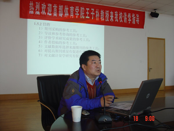 王子朴教授首先充分肯定了体军部重视教学科研、虚心交流学习的态度,他主要从学术期刊的分类、我国体育学术期刊的现状、学术规范三个方面展开做了讲解,尤其对如何结合自身的体育教学进行研究的选题立意、体育类学术论文的撰写注意事项,以及如何进行科学的投稿等对体军部参会全体教师进行了着重的详细介绍。