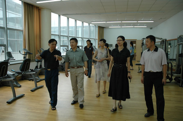 6月24日上午,中国药科大学体育部一行20人来我校体军部参观交流。在体军部主任季建成、党总支书记杨立军和副主任邬燕红及部分教师代表的陪同下,中国药科大学来访一行参观了我校体育馆、“心肺复苏模拟训练室”和“体质健康监测监控研究所”,双方就体育教学改革管理、师资培养、体育场馆管理等问题进行了积极、热烈的探讨,并就我校“生命安全教育融入高校体育教学”的教学改革课程内容、课程实施等一系列问题进行了深入交流。