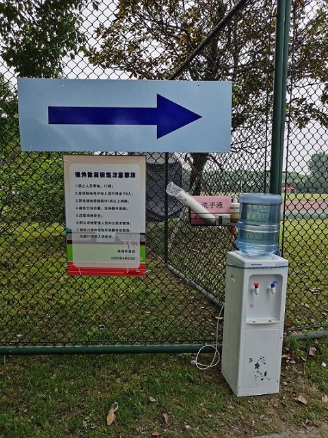 在师生返校复学的进程中,学校领导高度重视学生的体育教学、课外体育锻炼和运动场馆的管理情况,多次到运动场亲自参与指导体军部相关工作,并提出了具体要求。学校在学生返校复学后对上课班级人数进行了调整,为了满足复学后体育教学的需要,体军部对体育教学场地、时间、内容进行重新安排。一是将室内项目安排到室外运动场地;二是错时进出体育场地,上课学生之间保持适宜距离;三是在场地上摆放了部分帐篷,入口处放置了饮水机、藿香正气水、纸杯、免洗水液等物资供师生使用。