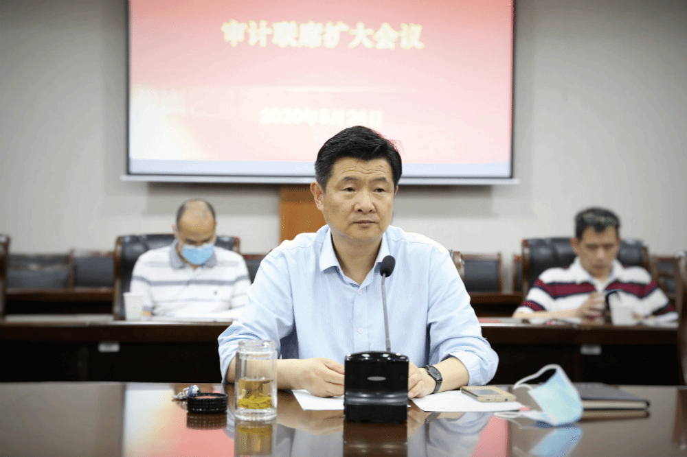 5月26日上午,学校审计联席扩大会议在闻厅一楼会议室召开。校长宋明顺主持会议并讲话,审计联席会议成员、各单位行政负责人参加了会议。