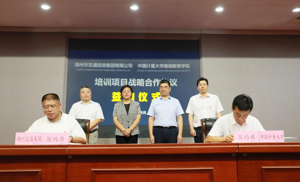 8月14日,继续教育学院与湖州交通投资集团有限公司(以下简称“湖州交通集团”)签订了为期五年的全员“培训项目”战略合作协议。签约仪式在我校闻厅报告厅举行。副校长葛洪良,湖州交通集团党委书记、董事长楼秋红,湖州交通集团党委副书记、副董事长、总经理杨倬等出席了签约仪式。签约仪式由继续教育学院党总支副书记梁丽主持。湖州交通集团党委副书记沈亮和继续教育学院院长黄海清代表双方签署协议。