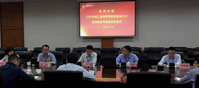 10月13日,省教育厅高校实验室安全现场检查专家组对我校实验室安全展开了现场检查,以浙江中医药大学实验室设备处处长王辉为组长的专家组听取了学校汇报,查阅了安全管理资料并对实验室现场进行了检查。