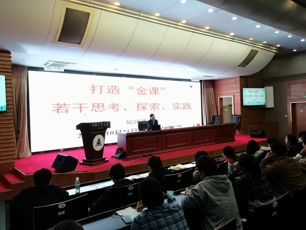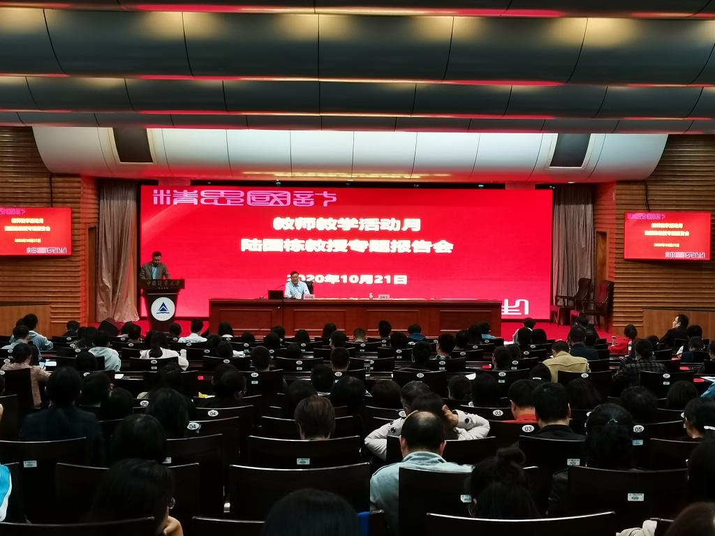 为了加强一流课程建设,提升课程教学水平,实现课程育人,构建中国计量大学一流课程体系,结合2020年教师教学活动月安排,10月21日,学校邀请了国家级教学名师、教育部普通高校工科基础课程教学指导委员会副主任、工程图学课程教学指导分委员会主任、中国高等教育学会工程教育专业委员会秘书长陆国栋教授来校作“打造‘金课’的若干思考、探索、实践”主题报告。学校各教学院长、本科专业负责人、一流课程负责人、校教学成果一等奖获得者、学院骨干教师、新教师、教学管理人员等参加了此次报告会,会议由副校长俞晓平主持。