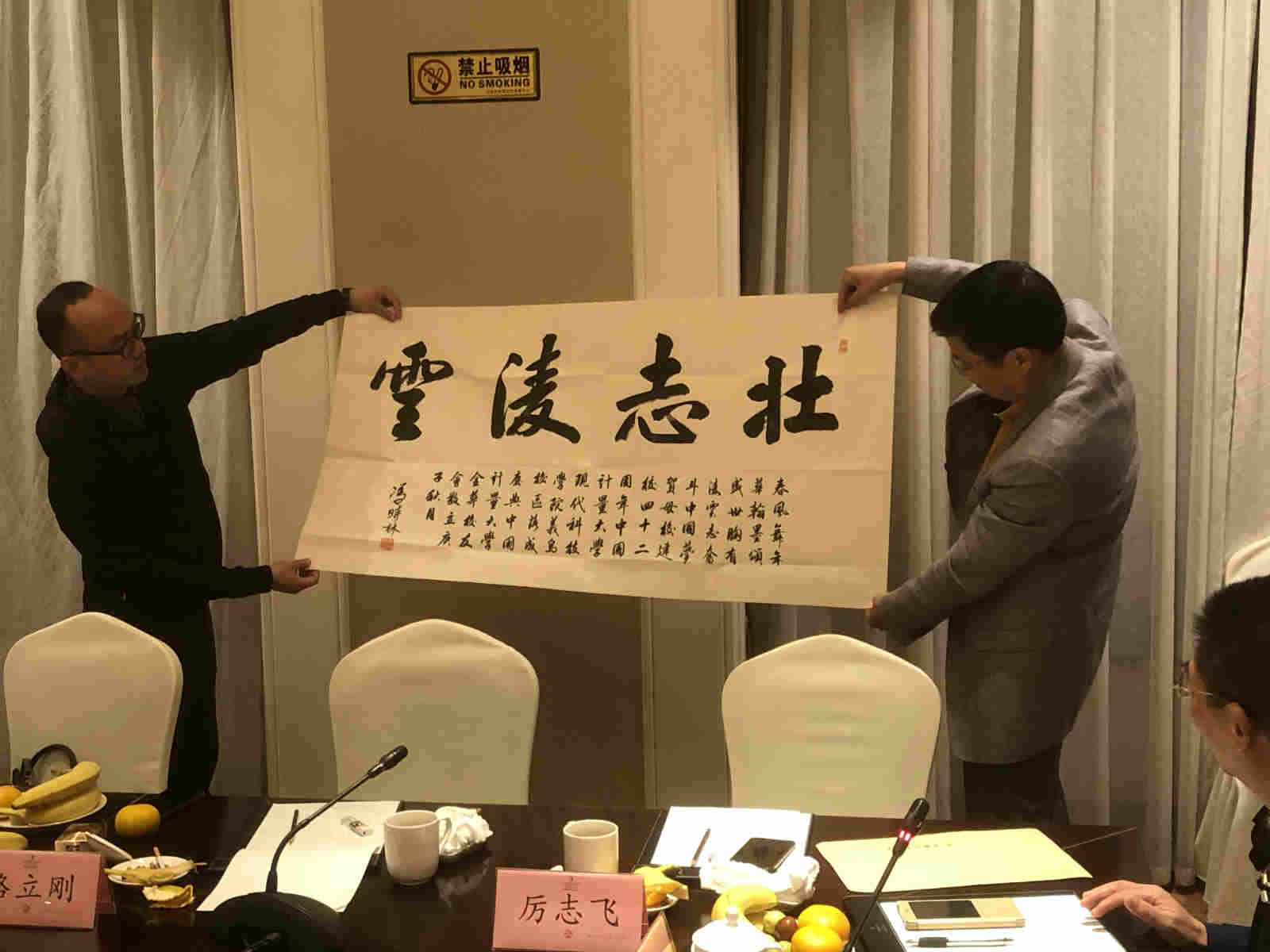 冯时林代表学校对大会的召开表示祝贺,向校友们表达母校的问候,对义乌校友们为现代科技学院办学所作出的贡献表示感谢。他简要介绍了学校在过去一年所取得的标志性成果以及2019年校友工作所取得的成就。他指出,校友不仅是母校的骄傲,更是母校发展的重要力量,而校友总会是是母校与校友共情、共享、共发展的主要纽带。校友总会要服务好各地校友会,传递学校信息,切实了解校友的需求,提高服务质量,力争在服务校友工作上取得更大成效,成为各地校友的精神家园。他希望金华校友会不仅为母校与校友之间以及各地校友之间开展交流和合作提供有力的支撑和组织保障,也要成为校友和母校联系的桥梁、合作的舞台、感情的纽带。要不断深化和拓展金华校友会的好经验、好做法,创新载体平台,进一步打响金华校友会品牌。要通过不断加强自身建设,来努力实现密切校友情感、助力校友成功的初衷。要加强校友会文化建设,形成特色鲜明的校友文化,及时吸纳青年校友,不断注入新鲜血液和生机活力。要加强校友间的实时互动与联系,在校友中形成生活中互相扶持、工作上互相帮助的良好氛围。同时,强化校友与母校间的情感纽带,定期组织值年返校等活动,引发情感共鸣,树立反哺意识,努力将校友会建成真正的“校友之家”。他强调,中国计量大学正站在新的历史起点上,向新的目标奋勇迈进。广大校友要牢记“精思国计 细量民生”的校训,志存高远、同心同德,携手共创美好未来,共同为母校增光添彩。最后,他还向金华校友会赠送了亲手题写的书法作品。