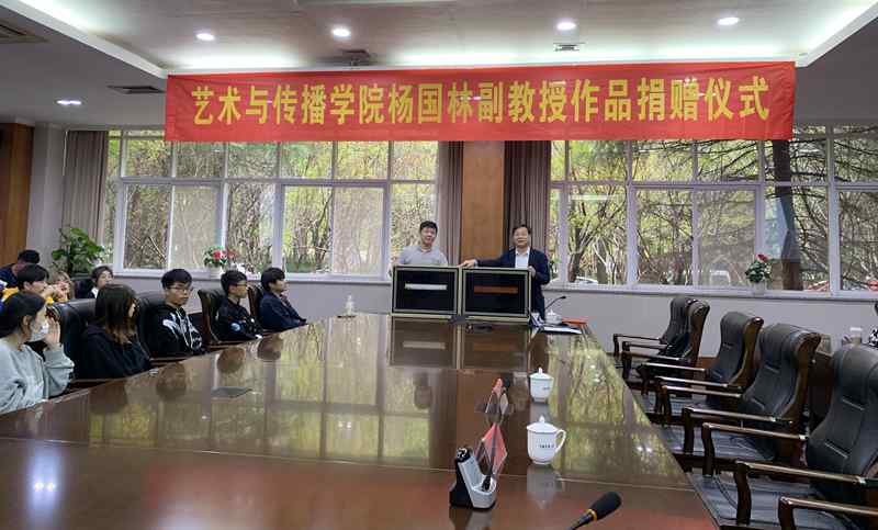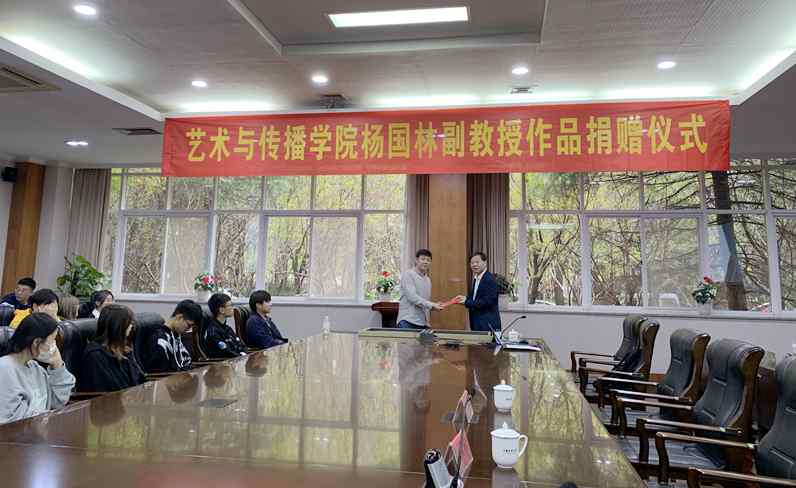 为迎接中国计量大学42周年校庆,10月21日,艺术与传播学院在闻厅一楼会议举行了杨国林副教授作品捐赠仪式,学校党委委员、纪委书记章建生为杨国林老师颁发收藏证书,学院党委书记张健主持了会议,学院师生参加了捐赠仪式。